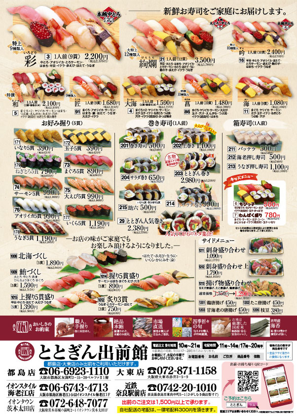 お近くの店舗までご注文のお電話でご連絡ください。